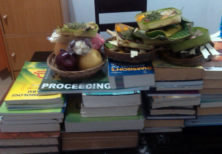 Kembali kepada konsep “Dewi Saraswati”, “Dewi Ilmu Pengetahuan” dan patung-patung perempuan cantik yang berdiri di atas teratai yang sedang mekar dan harum mengapung di atas telaga di halaman depan sekolah lengkap dengan beberapa ekor kodok, seekor angsa yang elok dan tangan-tangan Sang Dewi memegang benda-benda simbolik seperti ganitri dan wina atau alat musik petik lainnya. Pada hari terakhir dalam siklus 30 wuku atau pawukon menurut tradisi Hindu, sekolah-sekolah di Bali merayakan atau menutup siklus waktu dalam sistem penanggalan tradisional Bali dengan perayaan hari turunnya ilmu pengetahuan.